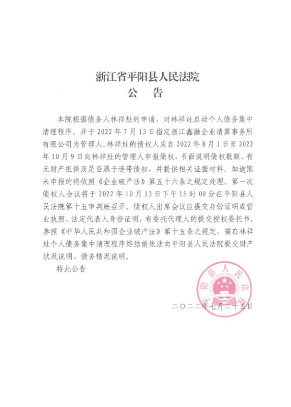 ZHEJIANG XINRONG ENTERPRISE LIQUIDATION FIRM CO.,LTD浙江省人民法院破產(chǎn)案件管理人安徽省人民法院破產(chǎn)案件管理人