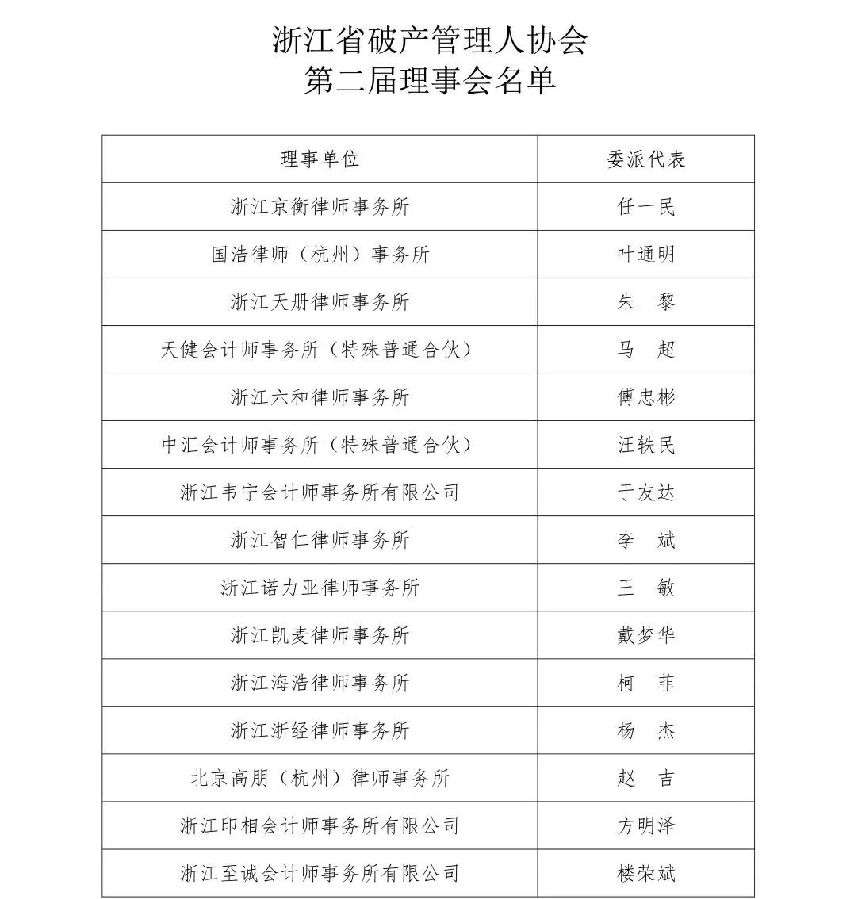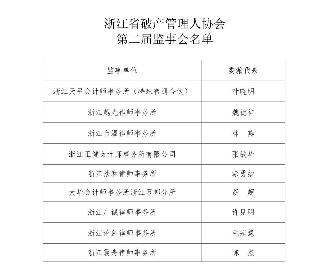 附:浙江省破產(chǎn)管理人協(xié)會第二屆理事會、監(jiān)事會名單
