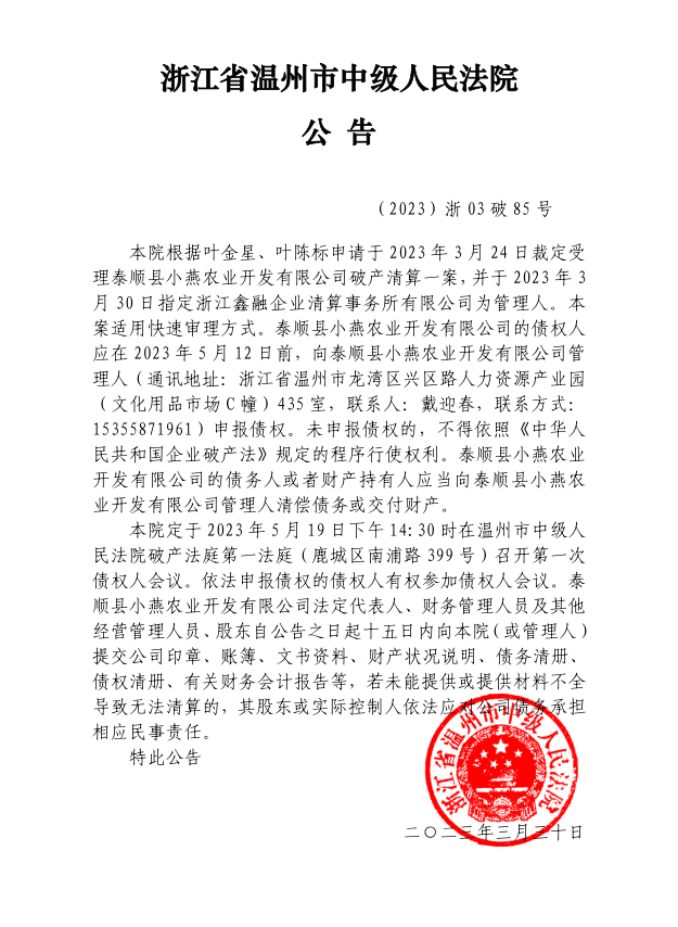 ZHEJIANG XINRONG ENTERPRISE LIQUIDATION FIRM CO.,LTD浙江省人民法院破產(chǎn)案件管理人安徽省人民法院破產(chǎn)案件管理人