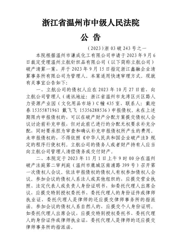 ZHEJIANG XINRONG ENTERPRISE LIQUIDATION FIRM CO.,LTD浙江省人民法院破產(chǎn)案件管理人安徽省人民法院破產(chǎn)案件管理人