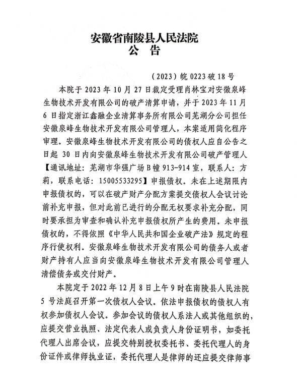 ZHEJIANG XINRONG ENTERPRISE LIQUIDATION FIRM CO.,LTD浙江省人民法院破產(chǎn)案件管理人安徽省人民法院破產(chǎn)案件管理人