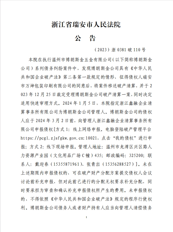 ZHEJIANG XINRONG ENTERPRISE LIQUIDATION FIRM CO.,LTD浙江省人民法院破產(chǎn)案件管理人安徽省人民法院破產(chǎn)案件管理人