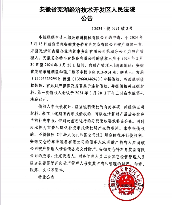 ZHEJIANG XINRONG ENTERPRISE LIQUIDATION FIRM CO.,LTD浙江省人民法院破產案件管理人安徽省人民法院破產案件管理人