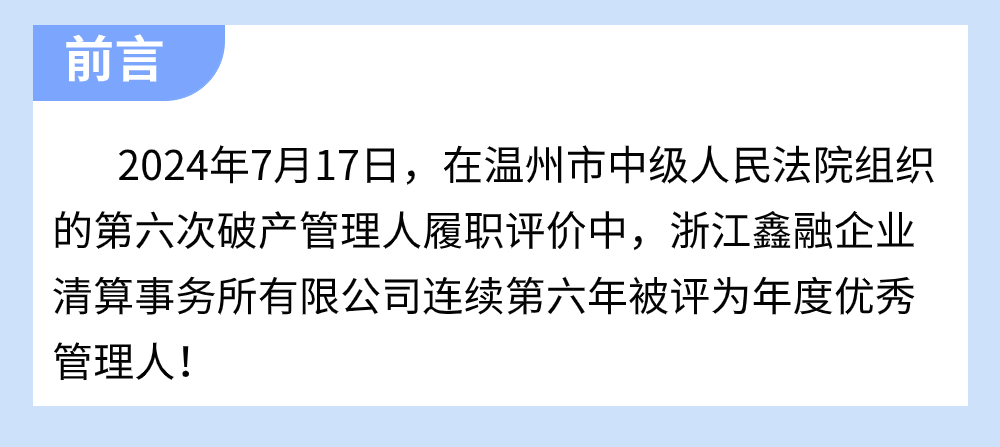 喜訊!本公司連續(xù)第六年被溫州中院評為年度優(yōu)秀管理人