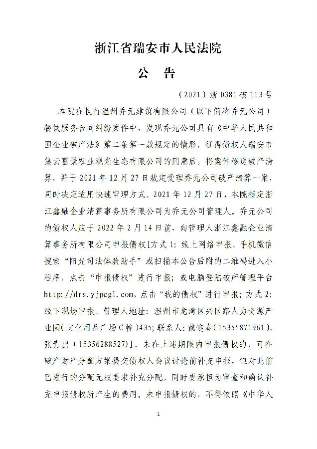 ZHEJIANG XINRONG ENTERPRISE LIQUIDATION FIRM CO.,LTD浙江省人民法院破產(chǎn)案件管理人安徽省人民法院破產(chǎn)案件管理人